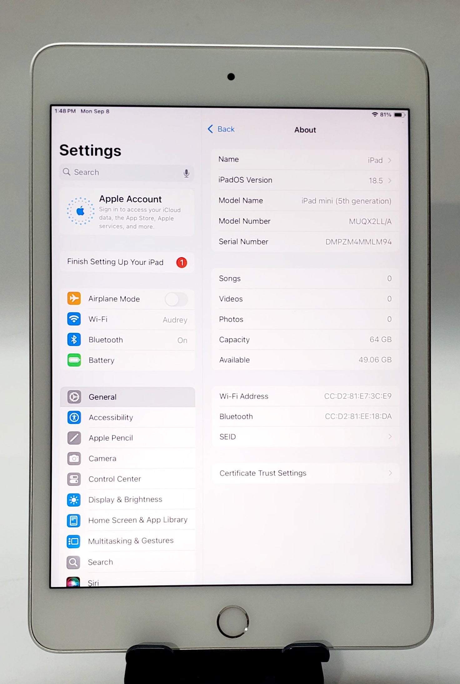 iPad Mini de 5ª generación – Plata, 64 GB, Wi-Fi