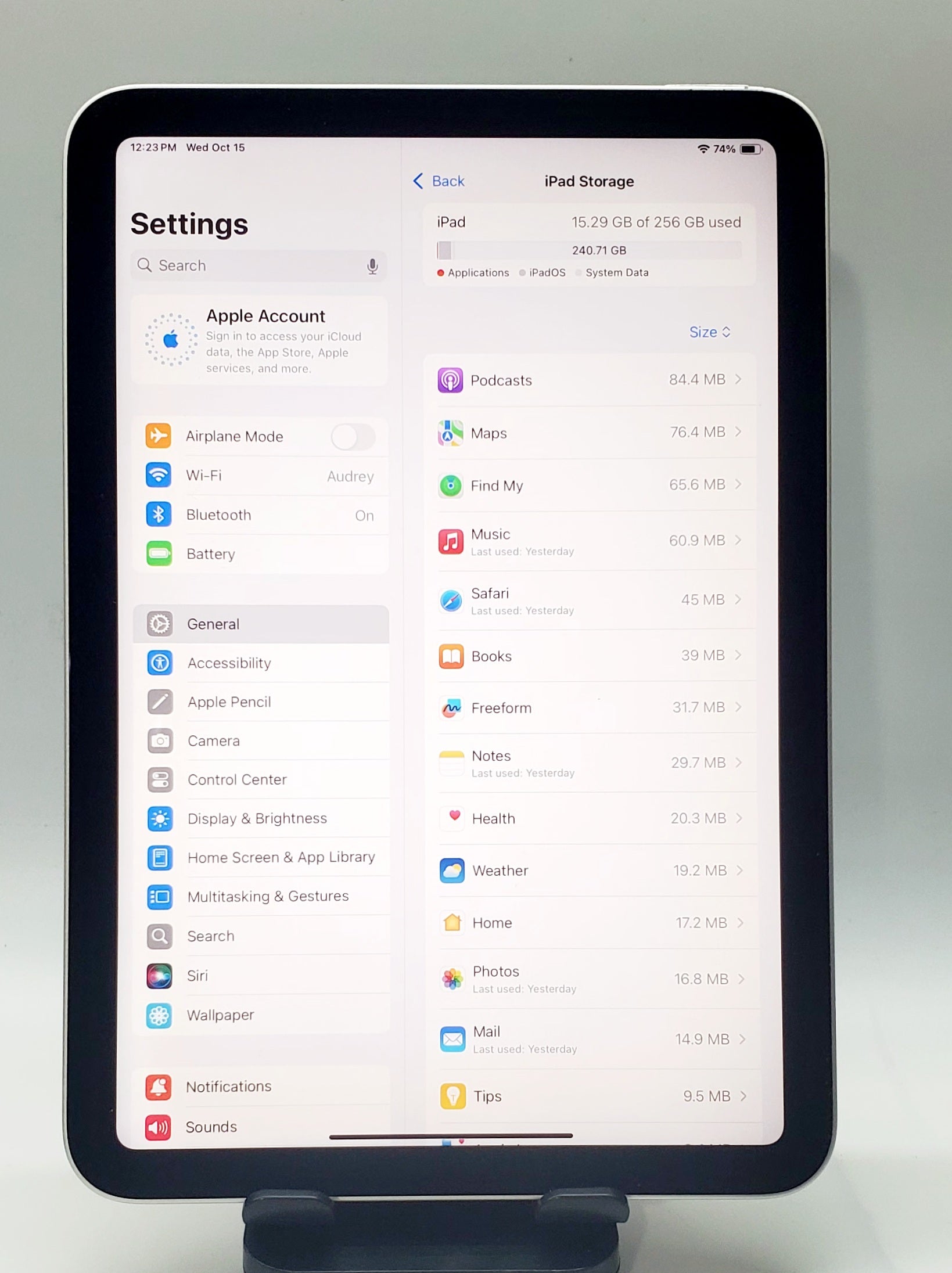 256 GB de almacenamiento para aplicaciones, contenido multimedia y archivos.